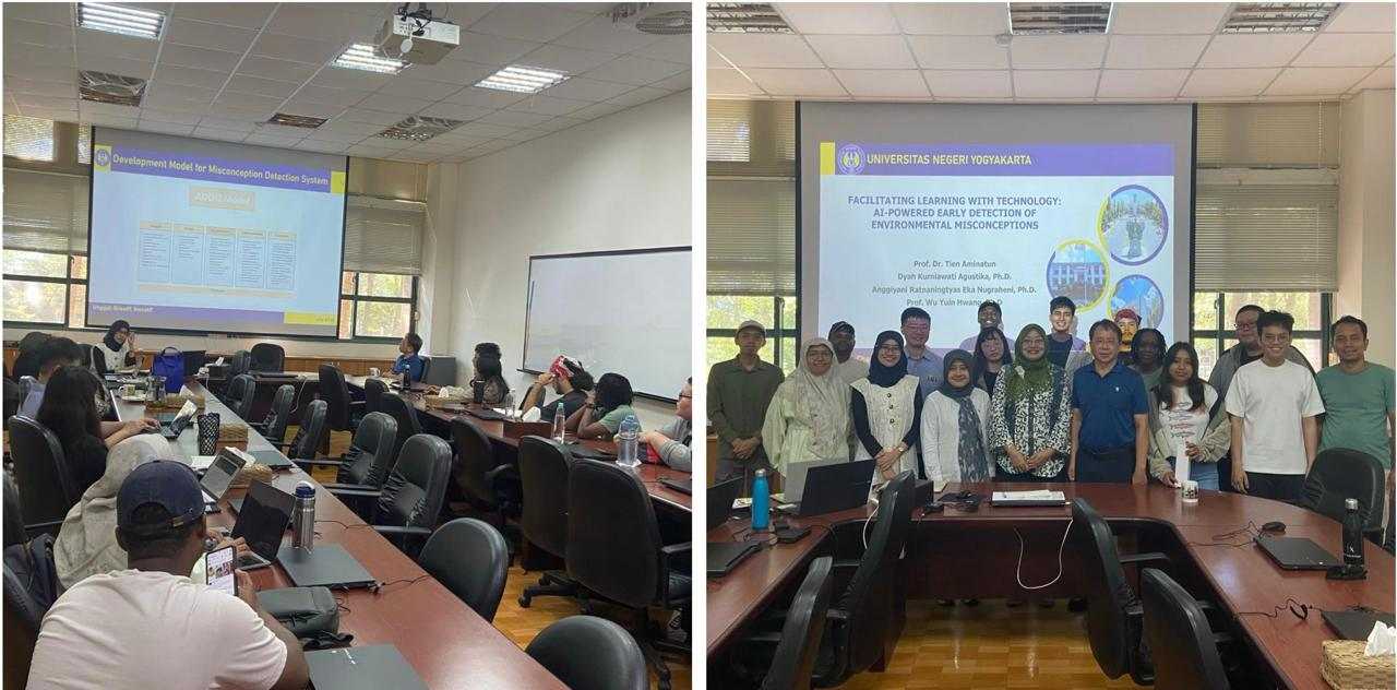 Kolaborasi ini melibatkan dosen FMIPA UNY, yaitu Prof. Dr. Tien Aminatun, Dyah Kurniawati Agustika, Ph.D., dan Anggiyani Ratnaningtyas Eka Nugraheni, Ph.D., yang bekerja sama dengan mitra utama dari NDHU, Prof. Wu Yuin-Hwang, Ph.D. Riset bersama yang sedang berjalan berfokus pada pemanfaatan Artificial Intelligence (AI) untuk melakukan deteksi dini miskonsepsi lingkungan. Penelitian ini memanfaatkan algoritma Support Vector Machine (SVM) untuk mengklasifikasi tingkat pemahaman konsep siswa dan mengidentifikasi pola miskonsepsi secara lebih akurat.